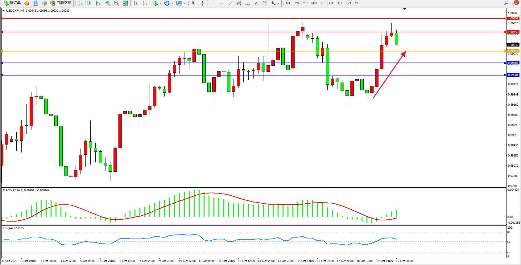美元瑞郎USDCHF——4小时K线图显示:
