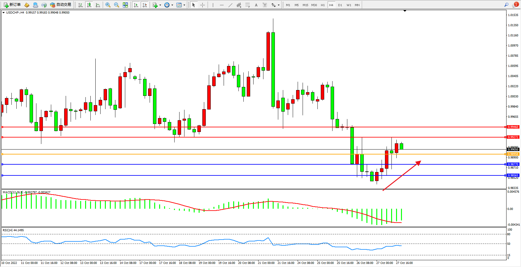 美元瑞郎USDCHF——4小时K线图显示: