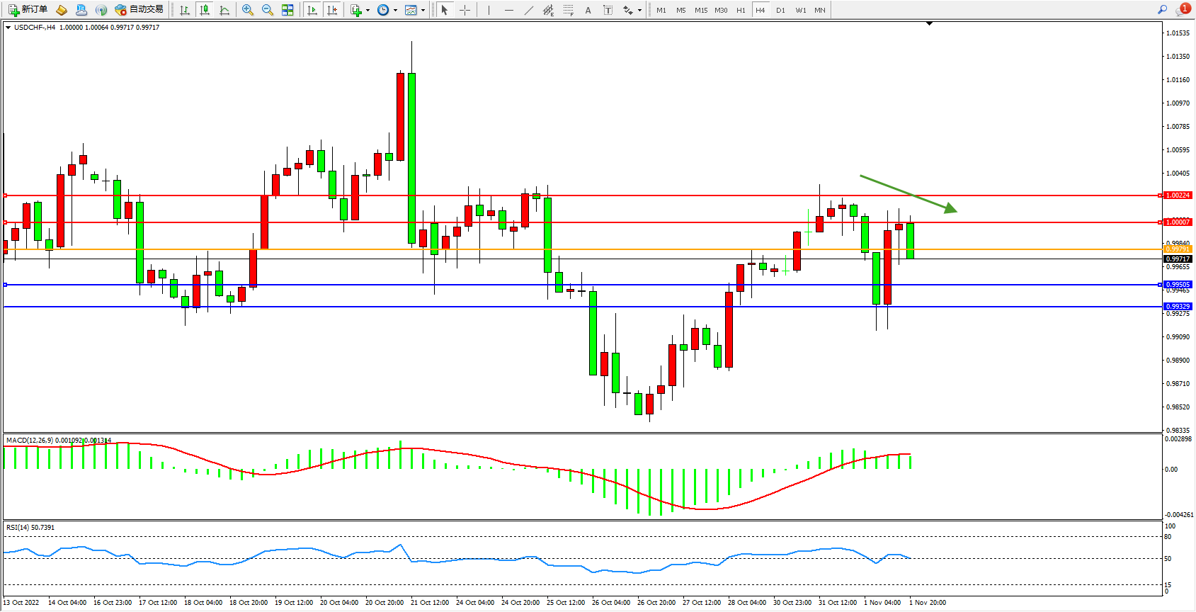 美元瑞郎USDCHF——4小时K线图显示: