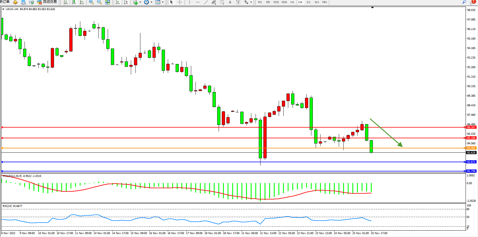 布油UKOil——4小时K线图显示: