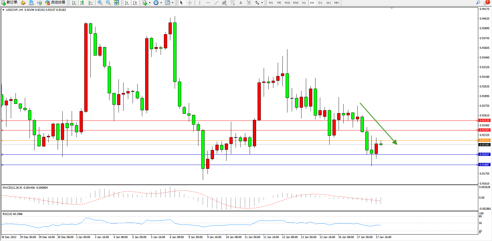 美元瑞郎USDCHF——4小时K线图显示: