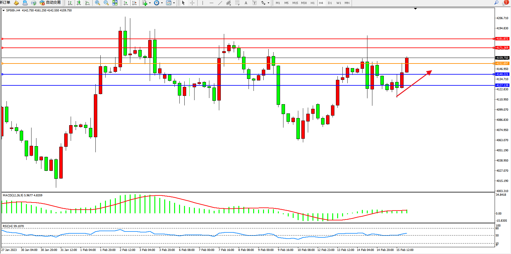 标普SP500——4小时K线图显示: