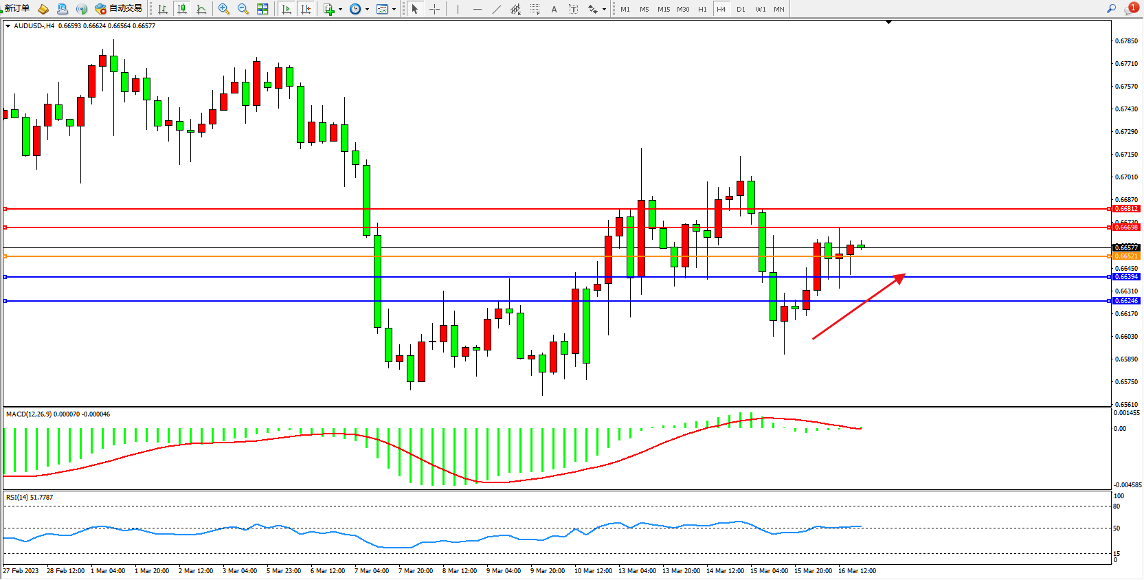 交易策略:0.66521上方看涨,目标0.66698 0.66812
