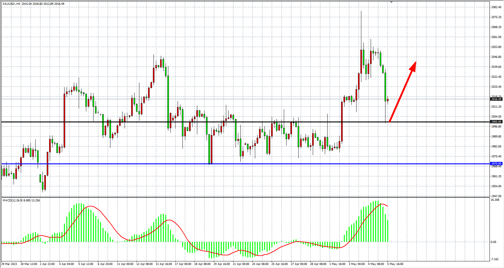 周五(5月5日)美国4月非农就业报告异常火热,4月失业率再创新低,薪资增速维持高位,通胀压力仍存,降息几率降温,经济衰退担忧有所冷却,黄金日内大跌50美元,险守2000关口。展望后市,随着避险情绪的集中释放,短期黄金价格可能会有所回落,但在经济衰退担忧和发达经济体货币政策调整预期刺激下,金价还存在继续走高可能。