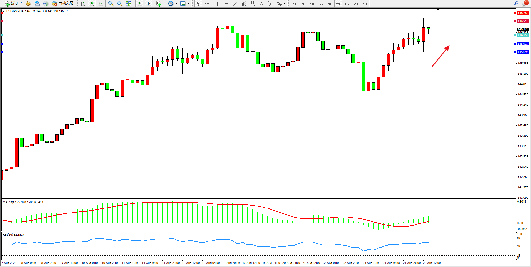 美元兑日圆维持146.328附近震荡,美元兑日已经达到去年日本当局出手干预的水准,但至今日本当局仍旧默不吭声,央行行长植田和男与首相岸田文雄会面也没有讨论日元汇率。