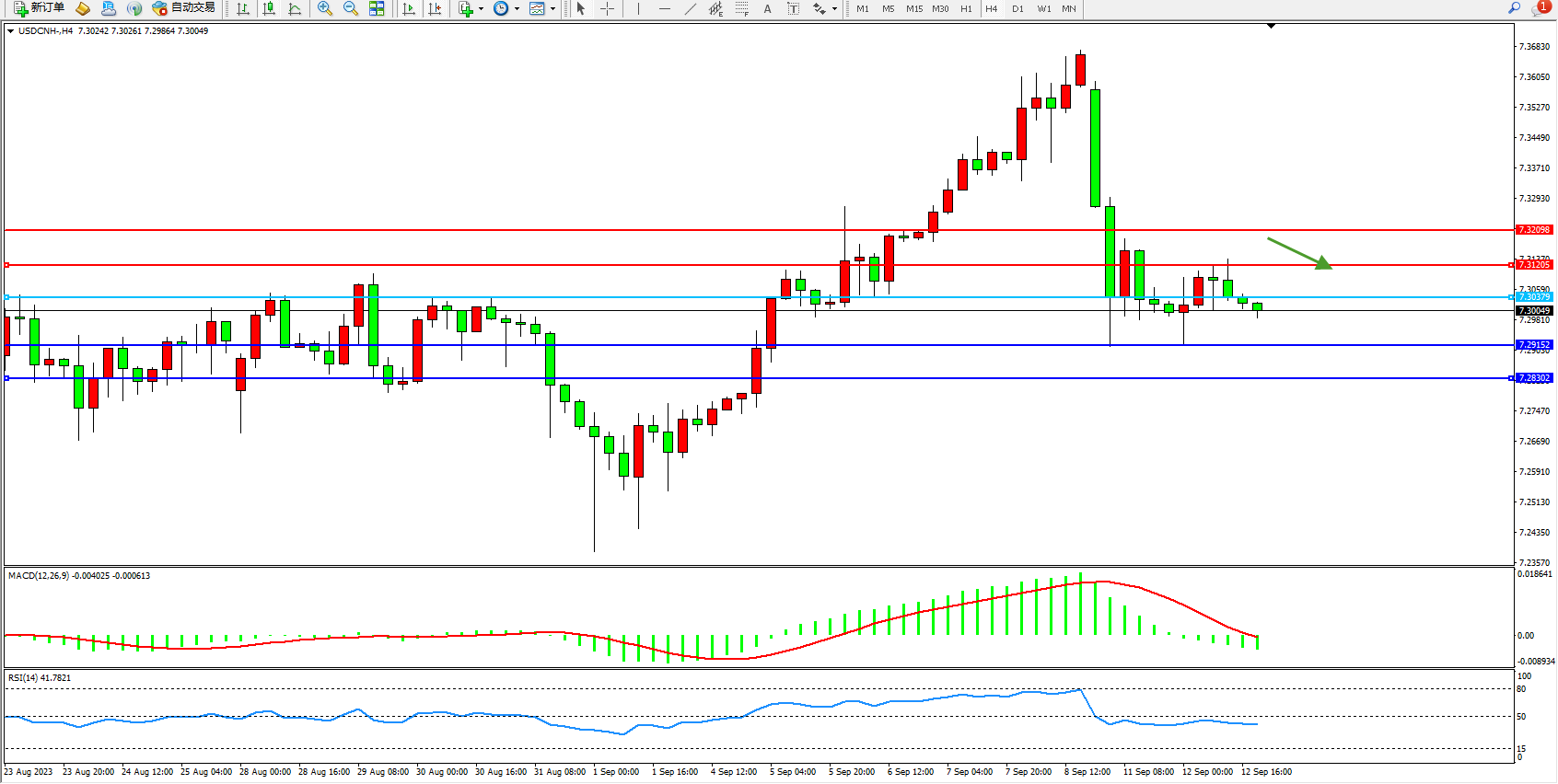 交易策略:7.30379下方看跌,目标7.29152  7.28302