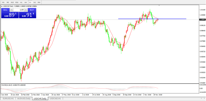 美元瑞郎USDCHF日线图:
