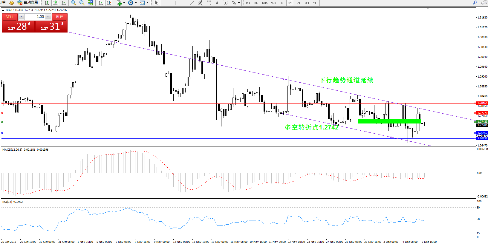 交易策略:1.27423下方看跌,目标1.269671.26752