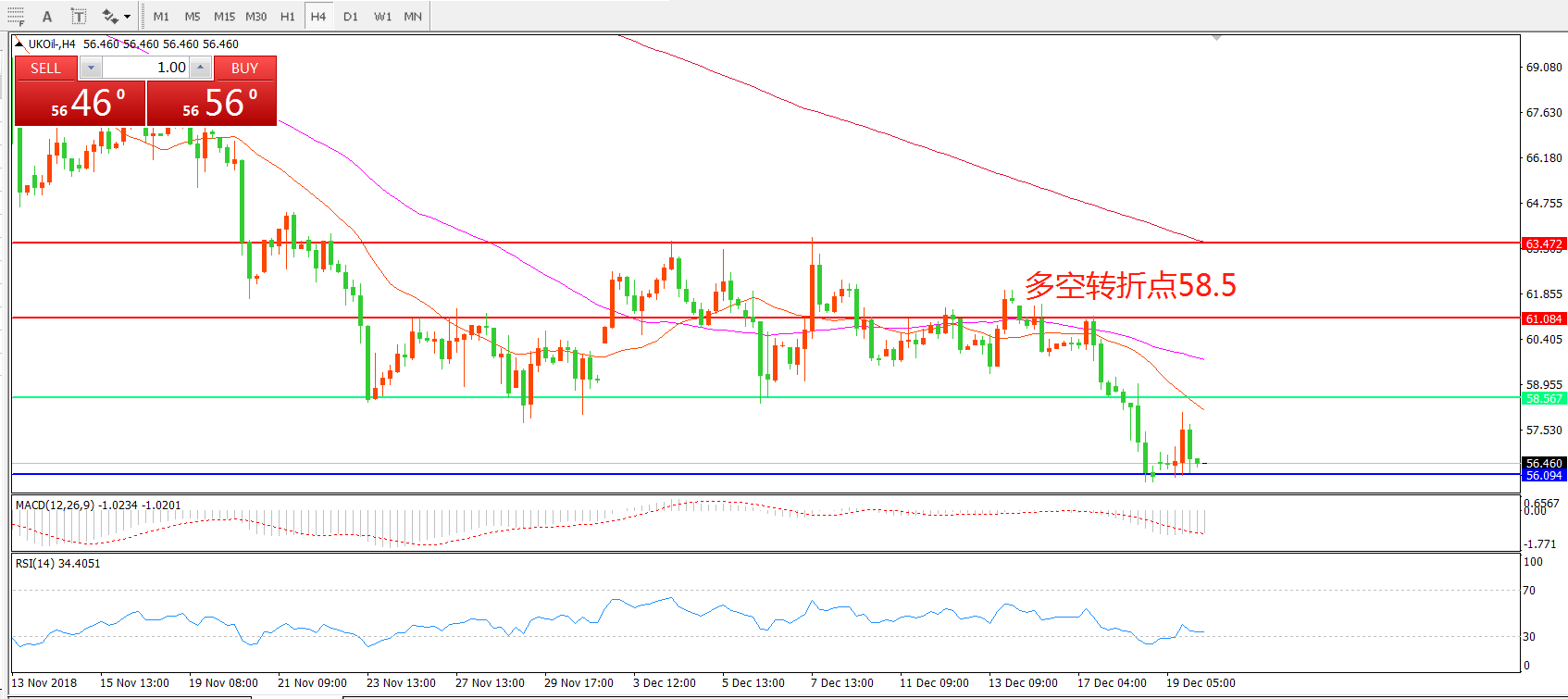 交易策略:在58.50之下看跌,目标56.00 53.00