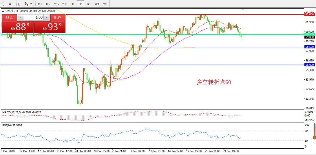 交易策略:在60.00之下看跌,目标58.50 56.00