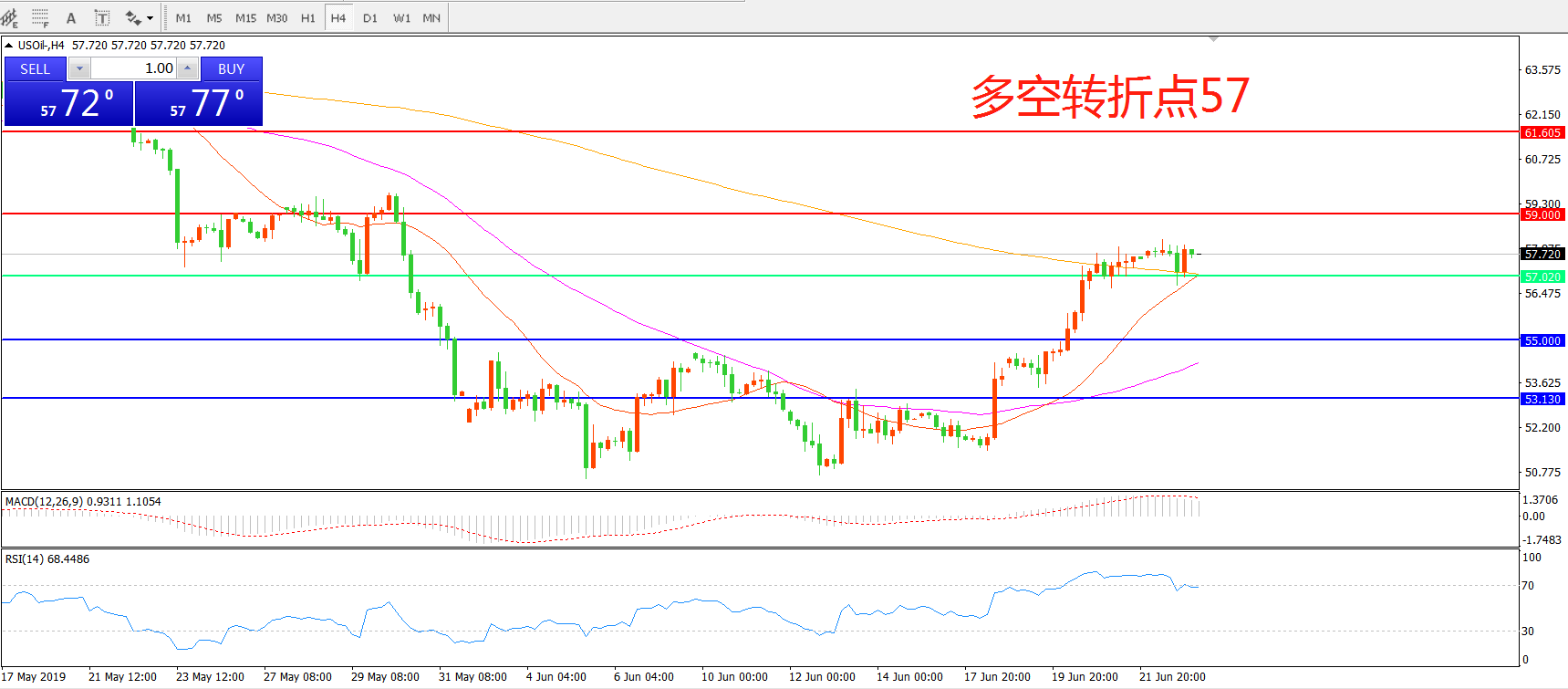 周一(6月24日),特朗普最新表示将签署一项行政命令,对伊朗实施新的严厉制裁,以响应上周美国一架无人驾驶飞机被击落的事件。而在特朗普周一签署这项命令后不久,伊朗外长努钦表示,在无人机被击落之前,对伊朗的一些制裁措施已经在酝酿之中。他说,伊朗外长贾瓦德扎里夫将于本周晚些时候受到制裁。特朗普施加的“极限压力”迟早将不可避免地遭遇伊朗的“极限反弹”,紧张情绪弥漫波斯湾上空,美油日内波幅不大,最终收报57.78美元/桶。
