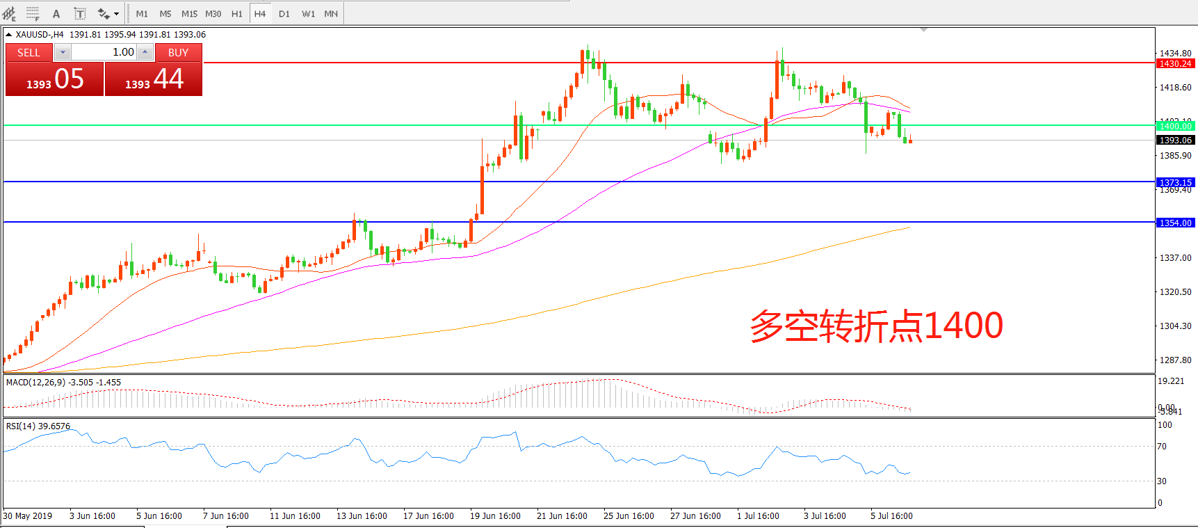 多空转折点:1400.00