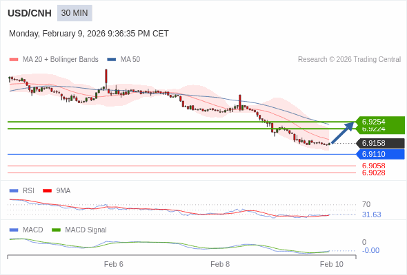 替代方案: 在6.9110以下,期待6.9058和6.9028。