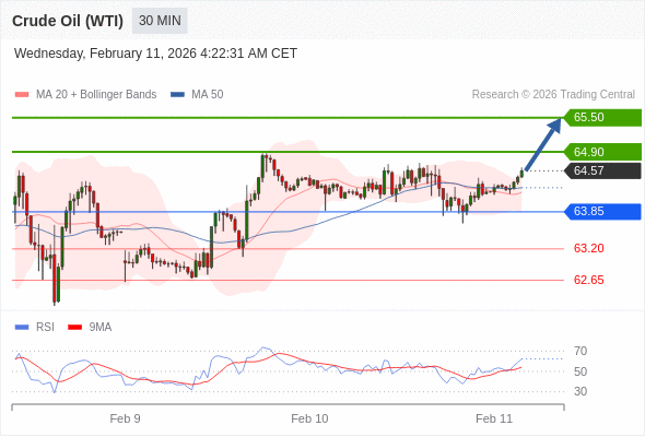 在 63.85 之上,看涨,目标价位为 64.90 ,然后为 65.50 。