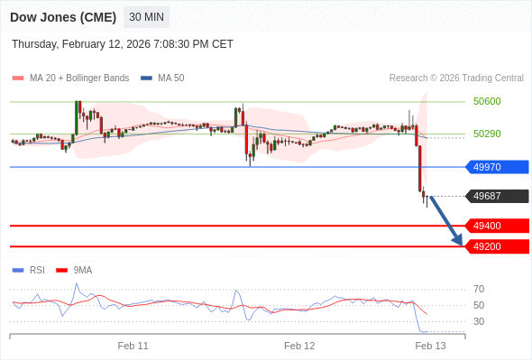 在 49970 之下,看跌,目标价位为 49400 ,然后为 49200 。