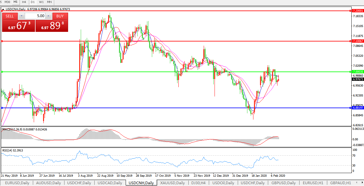 交易策略: 在7.0000之下,看跌,目标价位为6.8820,然后为6.7600。