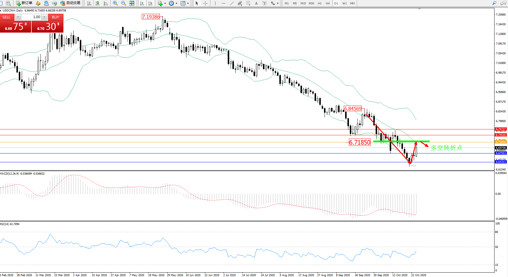 交易策略:6.71850下方看跌,目标6.67553、6.64313
