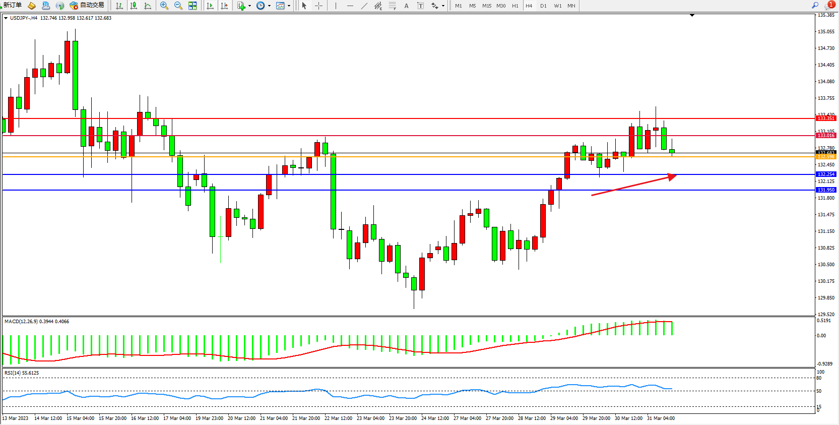 交易策略:132.598上方看涨,目标133.016 133.351